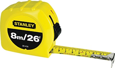 Stanley® Polymer coated single side measuring tape features 26' x 1" high-contrast blade for easy readability. Inch/metric tape is provided with three-rivet, corrosion-resistant hook that moves to allow accurate inside/outside measurements.