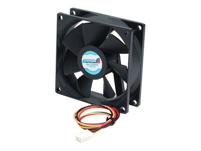 A plastic frame and a ball bearing design makes the StarTech.com 80 mm computer case fan a durable component for your computer, helping to keep your system stable while you go about your daily routine. Its three-pin wire features a built-in tachometer so you can measure the fan's performance.