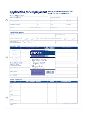 TOPS® Application for Employment, 2-Sided, 8-1/2 x 11", 50 Sheets/Pad, 2 Pads/Box (32851)