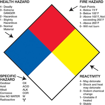- National Fire Protection Association "hazard diamond" shows health warning information to emergency response teams