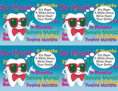 Attention-getting postcard captures your patients attention. The back of the postcard is blank so you can add a personalized message, using your own Laser Printer. Uncoated stock, perforated sheets. Four cards to an 8-1/2" x 11" sheet. 100 cards. Detached size: 4-1/4" x 5-1/2".