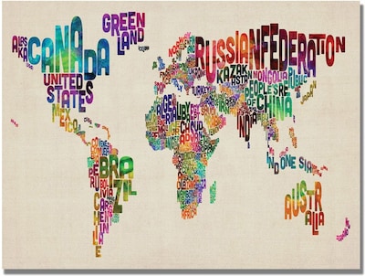 Trademark Global Michael Tompsett "Typography World Map II" Canvas Art, 18" x 24"