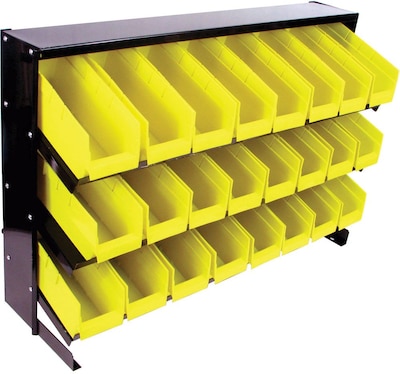 This Trademark Tools 24-bin parts storage rack is made of steel to help ensure that it lasts a long time. The black powder-coated finish on the rack gives it an appealing look while helping to keep the metal protected from the elements. Tilted Bins
