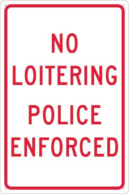 National Marker "No Loitering Police Enforced" Safety sign measures 18" x 12" and is made 0.040" aluminum material for added durability.