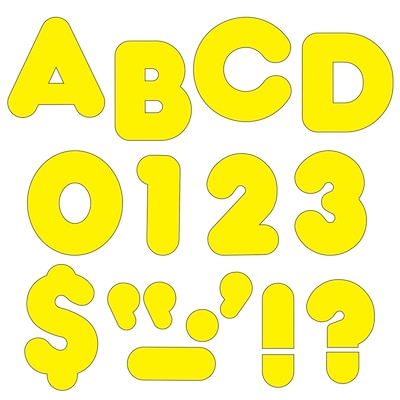 Trend Enterprises® 4" Casual letter set in yellow color includes 50 uppercase letters, 10 numerals 0 - 9, 11 punctuation marks and a blank sheet. Non-adhesive set helps to create colorful craft activities.