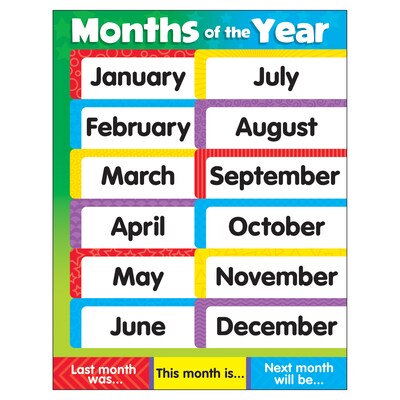 Trend Enterprises® "Months of The Year" Learning chart for grades PreK - 2nd stimulate development and helps to learn essential skills. Chart is featured with reproducible and teaching tips on back for easy learning.