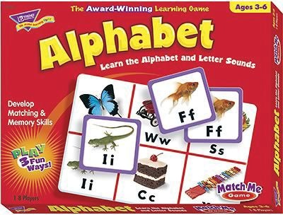 Trend Enterprises® Match Me® Alphabet game for grades pre-school - K helps to learn words and spelling effectively. Game ideal for 1 - 8 players can be played in 3 different ways and features easy to fallow format for convenience.