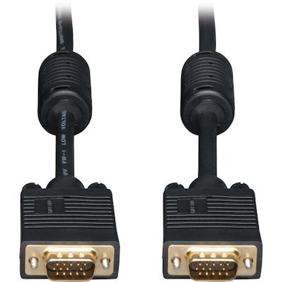 If you want to stream movies and videos from your laptop onto a VGA supported device, use the Tripp Lite Monitor Cable. Its copper conductors enable quick and lag-free data transmission and its PVC jacket is designed to withstand rigors of frequent use.This black VGA monitor cable features a 15-pin HD-15 male VGA connector on both ends, which have a simple plug-and-play functionality. As it is 20 feet in length, this cable allows you to place your source at a comfortable distance.