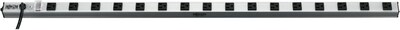 Black 15' power strip has rack mountable form factor.