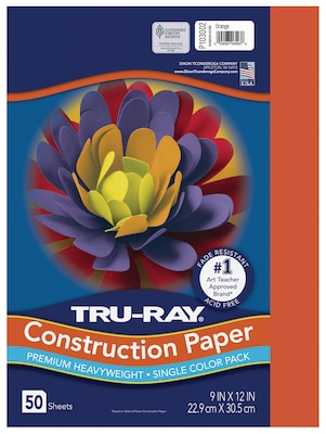 Tru-Ray 9" x 12" Construction Paper, Orange, 50 Sheets (P103002)