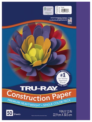 Heavyweight 100% vat-dyed sulphite with longer, stronger fibers. Tru-Ray® Construction Paper is tough enough to take scoring, folding and curling without cracking and tearing. Its superior fade-resistance keeps projects brighter and fresher longer. Available in 38 stay bright colors. 50 sheets per package. Acid free for less fade. 50% recycled fiber content and recyclable.