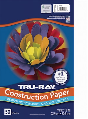 Tru-Ray 9" x 12" Construction Paper, White, 50 Sheets (P103026)