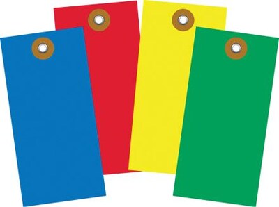 Tyvek Shipping tag with 3/16" metal eyelet is tear-resistant and is ideal for use with shipping items. Yellow shipping tag measuring 4 3/4" x 2 3/8" is made of durable spunbonded olefin and is sold as 100 per case.