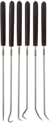 Ullman 9 3/4" 6-Piece Individual hook and pick set features blade made of high carbon steel and a cushioned grip handle for comfort holding. Set comes with hook, combination pick, 90 deg pick, straight pick, double angle pick and complex pick.