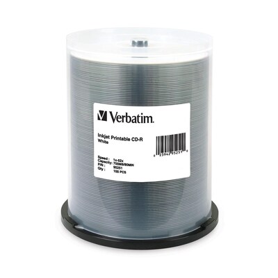 Verbatim® 700MB White Inkjet Printable CD-R; Spindle, 100/Pack