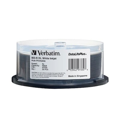Verbatim® DataLife 97334 Blu-ray Disc® BD-R 50GB Dual Layer Inkjet Printable Disc; Spindle, 25/Pack