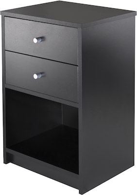 Winsome Ava accent table features 2 drawers with metal hardware for concealed storage of items and an open cabinet for display of items. Table in black finish is made of composite wood for longer durability.