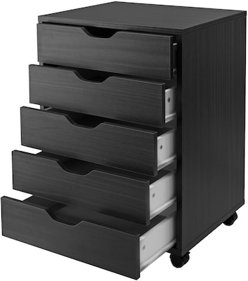 Winsome Halifax storage cabinet having black finish is designed specially for closet or office requirements to store your favorite accessories and storage fills features 5 drawers with cut out drawer pull.