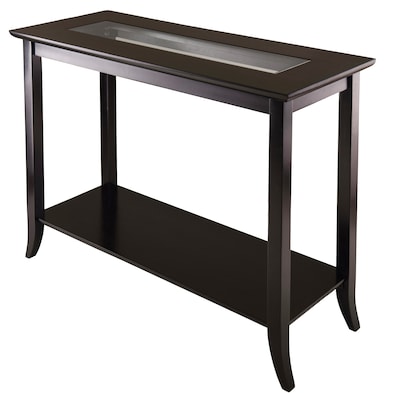 Winsome Genoa rectangular console table is constructed with the combination of solid and composite wood for durability and features a heat resistant tempered glass top.