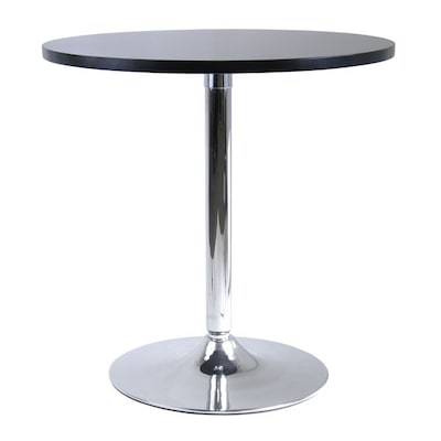 Winsome Spectrum 29" dining table features moisture resistant chrome finished metal leg and pedestal base. Round top of the table made from stable medium density fiberboard has black matte finish.