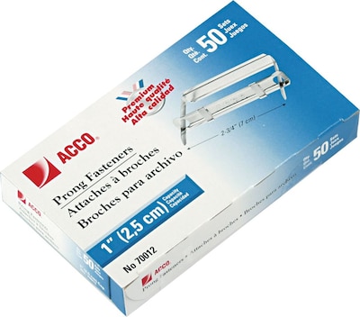 ACCO Premium 8.5"W Prong Fasteners, Silver, 50/Box (A7070724)