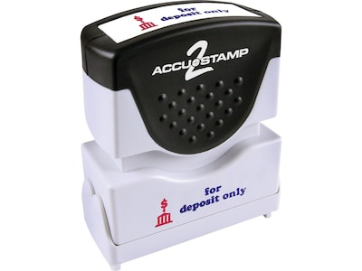 File out checks for deposits by using this pre-inked red and blue stamp and save time. Simply line up this Accu-Stamp 2 two-color shutter message stamp and press down to create clean and clear impressions on documents.