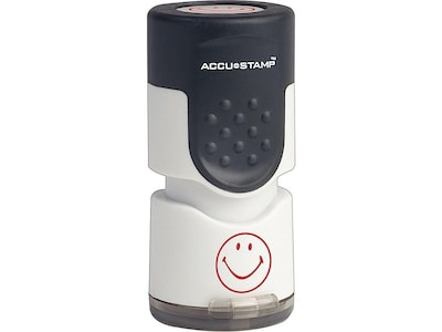 Liven up graded homework, memos, reports, and notes with this 0.6-inch stamp. This Accu-Stamp pre-inked smiley face stamp includes a protective plastic cap to keep the ink pad moist and ready for every impression.
