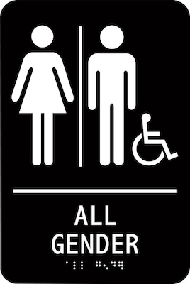 Accuform ADA Braille Sign, ALL GENDER W/Graphic, 9" x 6", Plastic, Black (PAD111BK)