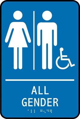 Accuform ADA Braille Sign, ALL GENDER W/Graphic, 9" x 6", Plastic, Blue (PAD111BU)