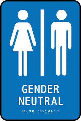 Accuform ADA Braille Sign, GENDER-NEUTRAL W/Graphic, 9" x 6", Plastic, Blue (PAD106BU)