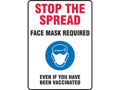 - Safety sign with the Stop the Spread Face Mask Required Even if You Have Been Vaccinated message