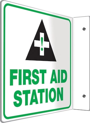 Accuform First Aid Station Projection Sign, Green/Black/White, 8"H x 8"W (PSP723)