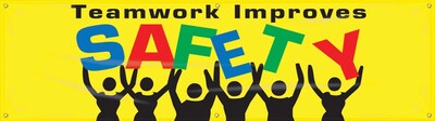 Accuform Motivational Safety Banner, TEAMWORK IMPROVES SAFETY, 28" x 8', Reinforced Vinyl (MBR870)