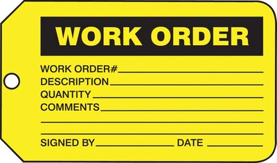 OSHA-compliant tags with the pre-written phrase "WORK ORDER."