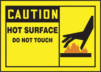 OSHA-compliant label with the pre-written phrase "CAUTION HOT SURFACE DO NOT TOUCH."