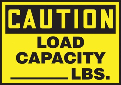 OSHA-compliant label with the pre-written phrase "CAUTION LOAD CAPACITY _____ LBS."