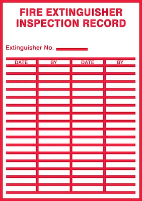OSHA-compliant label with the pre-written phrase "FIRE EXTINGUISHER INSPECTION RECORD."