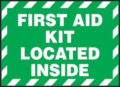 OSHA-compliant label with the pre-written phrase "FIRST AID KIT LOCATED INSIDE."