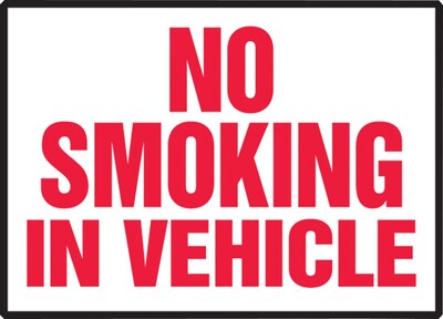 OSHA-compliant label with the pre-written phrase "NO SMOKING IN VEHICLE."