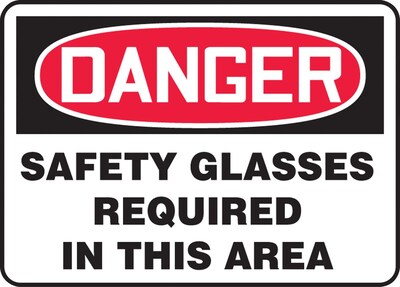 Accuform Safety Sign, DANGER SAFETY GLASSES REQUIRED IN THIS AREA, 10" x 14", Plastic (MPPA002VP)