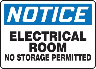 Accuform Safety Sign, NOTICE ELECTRICAL ROOM NO STORAGE PERMITTED, 7" x 10", Aluminum (MELC801VA)