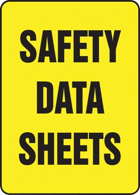 Safety Data Sheets sign made of adhesive vinyl. Measures 14" x 10".