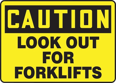 Accuform Signs® Safety Sign, CAUTION LOOK OUT FOR FORKLIFTS, 10" x 14", Plastic, Each