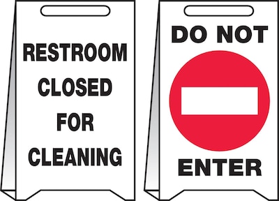Accuform Signs® Slip-Gard™ RESTROOM CLOSED FOR CLEANING..Reversible Fold-Ups, Red/BLK/White, 20"x12"