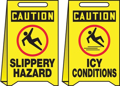 Accuform Slip-Gard CAUTION SLIPPERY HAZARD.. Reversible Fold-Ups, Red/Black/Yellow, 20"x12" (PFE419)