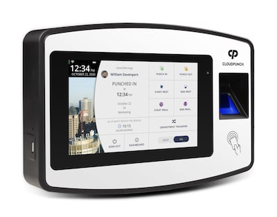 CloudPunch CP200 was built for businesses like yours that need a reliable, easy-to-use, and affordable time, attendance, and scheduling system. The CloudPunch CP200 features a biometric fingerprint scanner, RFID reader, and personal PIN punching right on the clock. Cloud-connected via Wi-Fi or LAN, the CloudPunch CP200 will securely store your punches, even during temporary Internet outages, and automatically send data to the cloud once connectivity is restored.