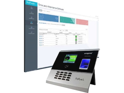 Acroprint ProPunch is a versatile software package that installs on a PC in your network and allows punching and management of your employee's time and attendance via the web. The ProPunch system includes software and a fingerprint biometric time clock that supports 50 employees right out of the box. Upgrades are available and allow you to expand the employee capacity and add time clocks based on your needs.