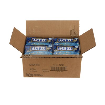 Ensure savory snacks are always available with this carton of microwave popcorn. Perfect for break rooms, this popcorn comes in individually wrapped, 2.75-ounce serving bags. This ACT II microwavable popcorn features a delicious light butter flavor and requires roughly two minutes of cook time per pack.