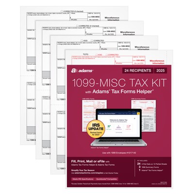 - 2025 1099-MISC kit includes 24 4-part 1099-MISC forms, 3 1096 forms, 24 self-seal envelopes and access to Adams Tax Forms Helper