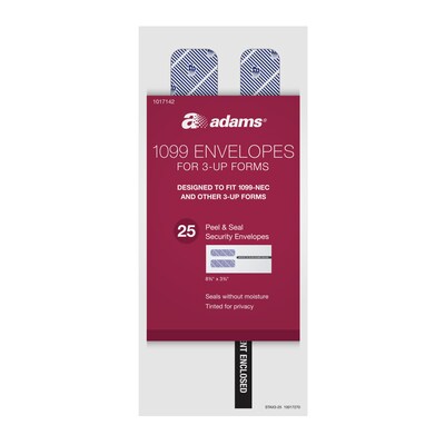 Adams double-window 1099 envelopes for 3-up tax forms keep your confidential tax information secure.